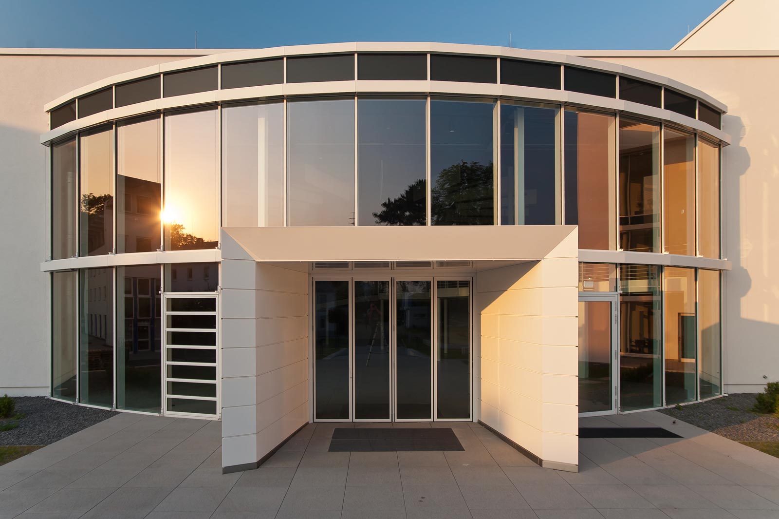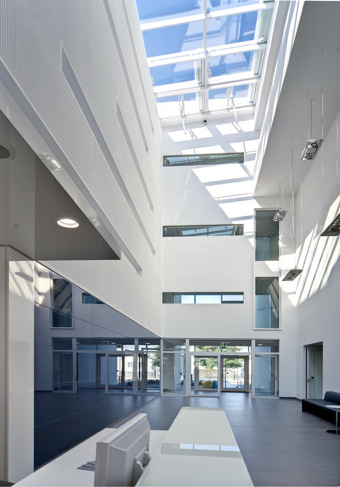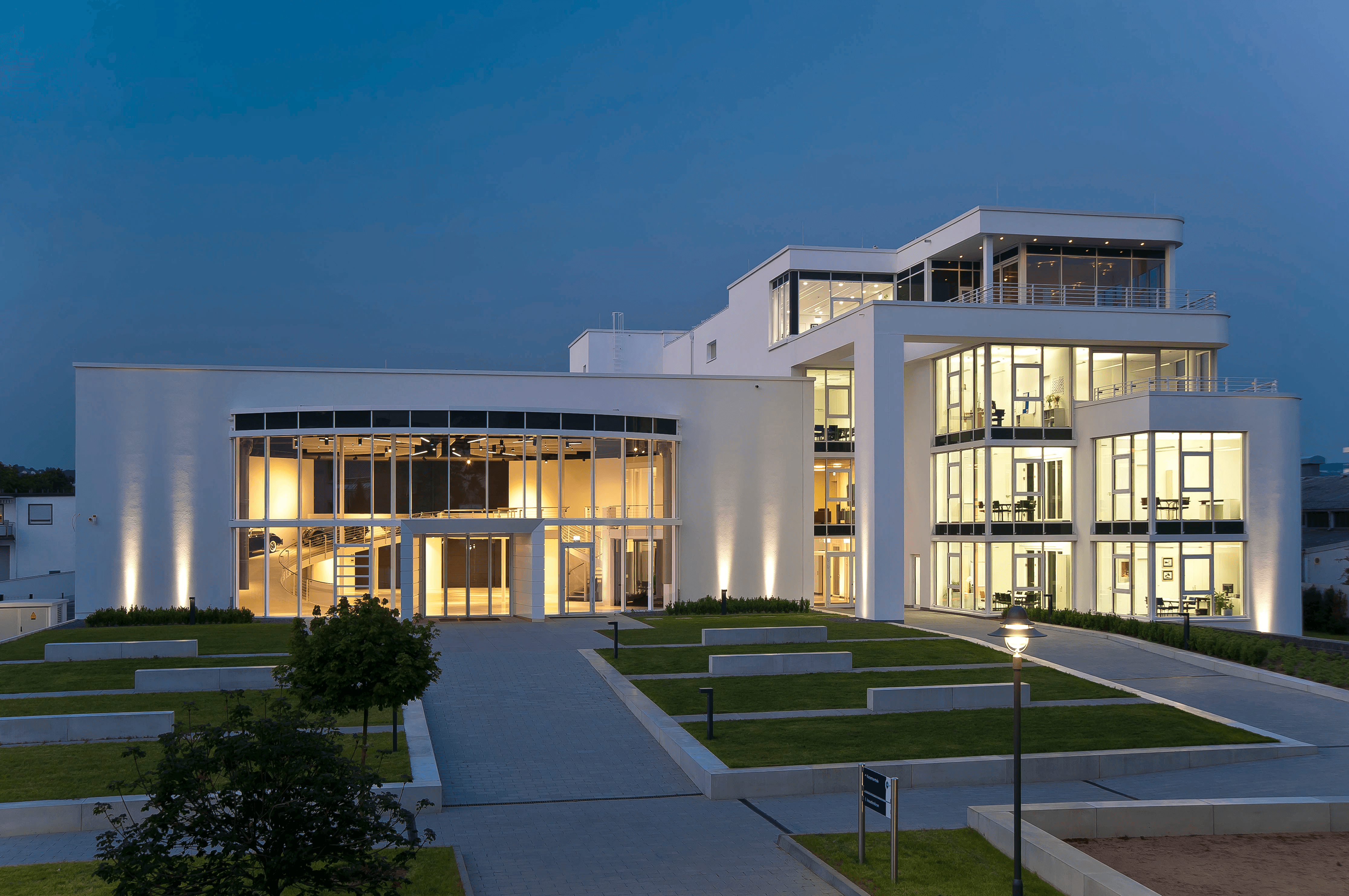 Ein bestehendes Industriegebäude wurde umfassend umgebaut und erweitert, um es in ein modernes, energieeffizientes Verwaltungsgebäude zu verwandeln. Die Hallenstruktur wurde durch Lichthöfe und Lichtschneisen gegliedert, was eine natürliche Belichtung ermöglicht. Neben Büroflächen erhielt das Gebäude ein Fitnesscenter im Untergeschoss und ein Innovationszentrum und wurde im April 2012 offiziell in Betrieb genommen. Die CompuGroup Medical AG setzte damit ein Zeichen für nachhaltigen und ökologischen Umgang mit Energien.