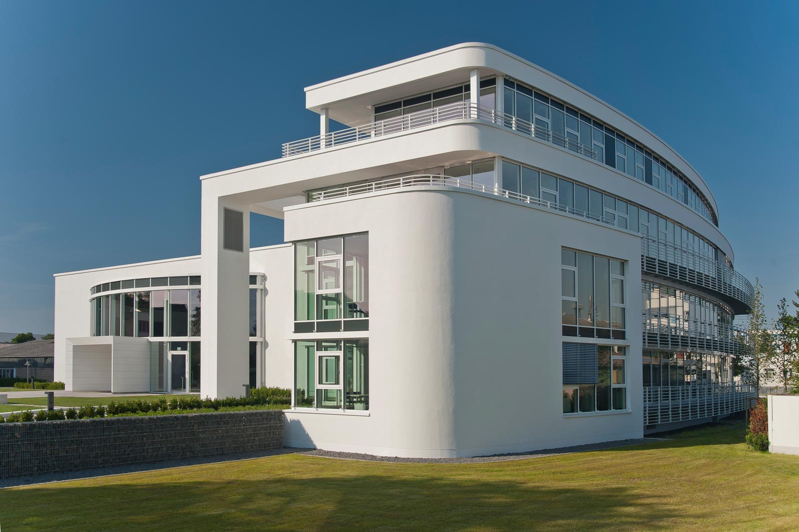Die Architektur, angelehnt an die klassische Moderne, wurde von fries architekten – Vallendar entworfen und entspricht dem Corporate Design der CompuGroup Medical AG. Es entstanden rund 4000 Quadratmeter neue Büroflächen. Das Gesamtvolumen für Umbau und Neubau beträgt ca. 33.000 Kubikmeter umbauten Raum. Das viergeschossige Gebäude 10 dient als neue Konzernzentrale, während Gebäude 11 zu einer Ausstellungshalle umgebaut wurde. Der Neubau wurde im Passivhausstandard errichtet und erreichte eine Reduzierung der Heizwärme um über 80 Prozent im Vergleich zu einem ähnlichen Neubau.